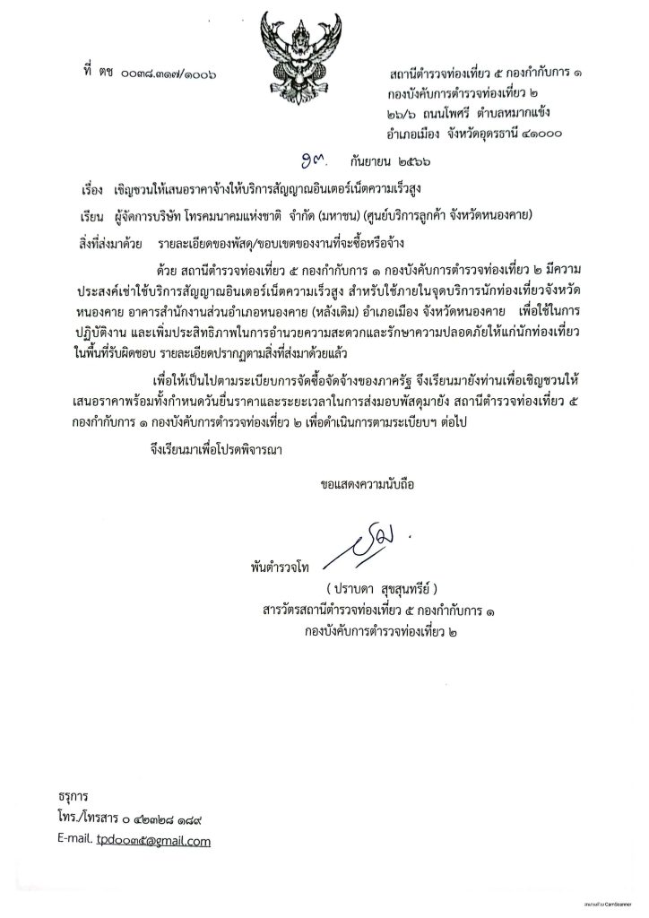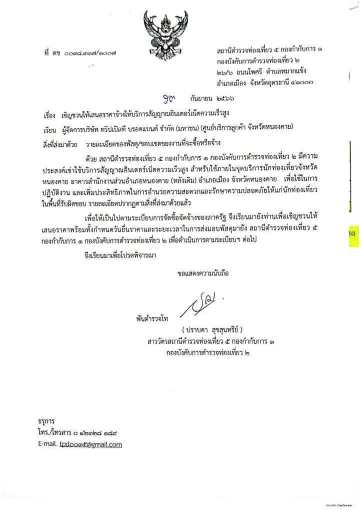 เชิญชวนให้เสนอราคาจ้างให้บริการอินเตอร์เน็ตความเร็วสูง จุดบริการนักท่องเที่ยวจังหวัดหนองคาย