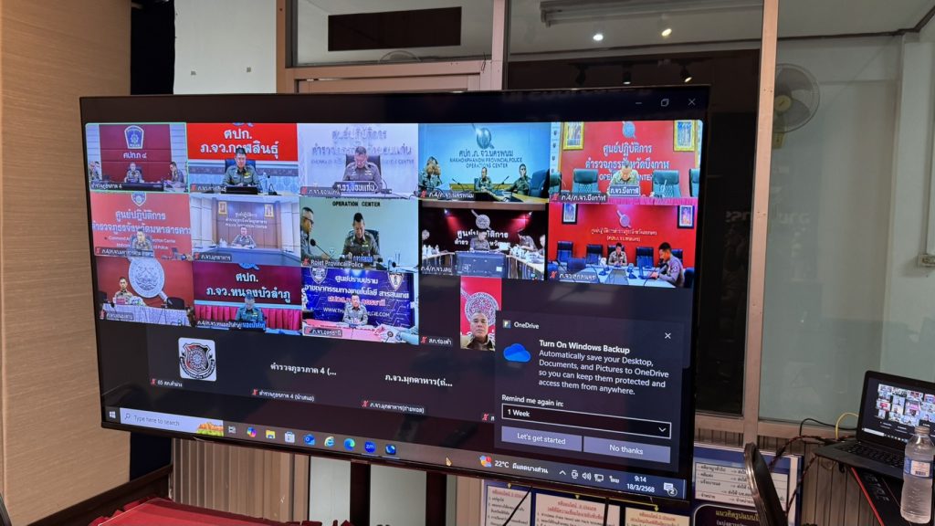 งานนโยบายและแผนเข้าร่วมประชุมขับเคลื่อนศูนย์รักษาความปลอดภัยนักท่องเที่ยว ณ ห้องประชุมดาวเงิน ภ.จว.อุดรธานี โดยมี สภ.ทุกแห่งในสังกัดเฝ้าฟังการประชุม ณ ที่ตั้งของหน่วย พล.ต.ต.พิษณุ อุณหเสรี รอง ผบช.ภ.4 เป็นประธานในการประชุม