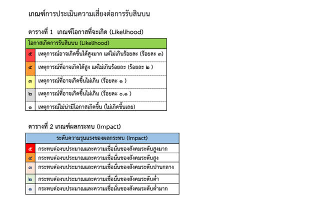ประชุมประเมินความเสี่ยงต่อการรับสินบน เพื่อสอบถามปัญหาและให้แต่ละสายงานชี้แจงความเสี่ยงต่อการรับสินบน เพื่อหาแนวทางป้องกันร่วมกัน