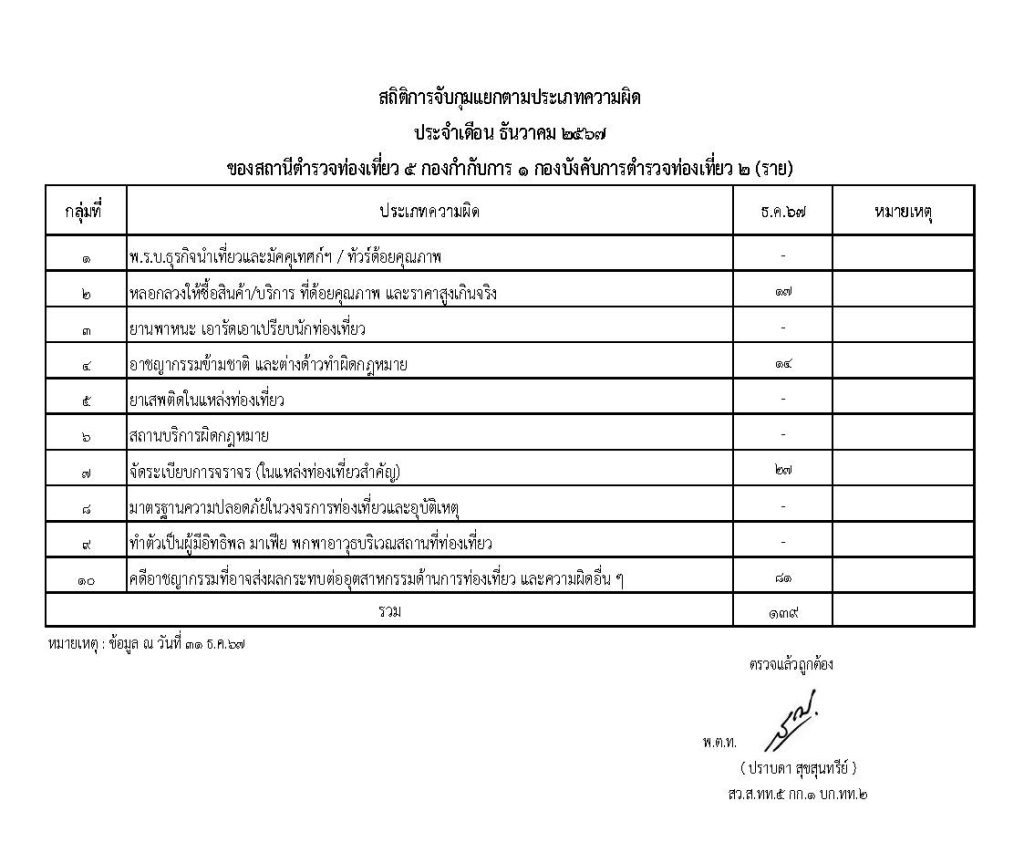 สถิติการจับกุมแยกตามประเภทความผิด เดือน ธ.ค.67