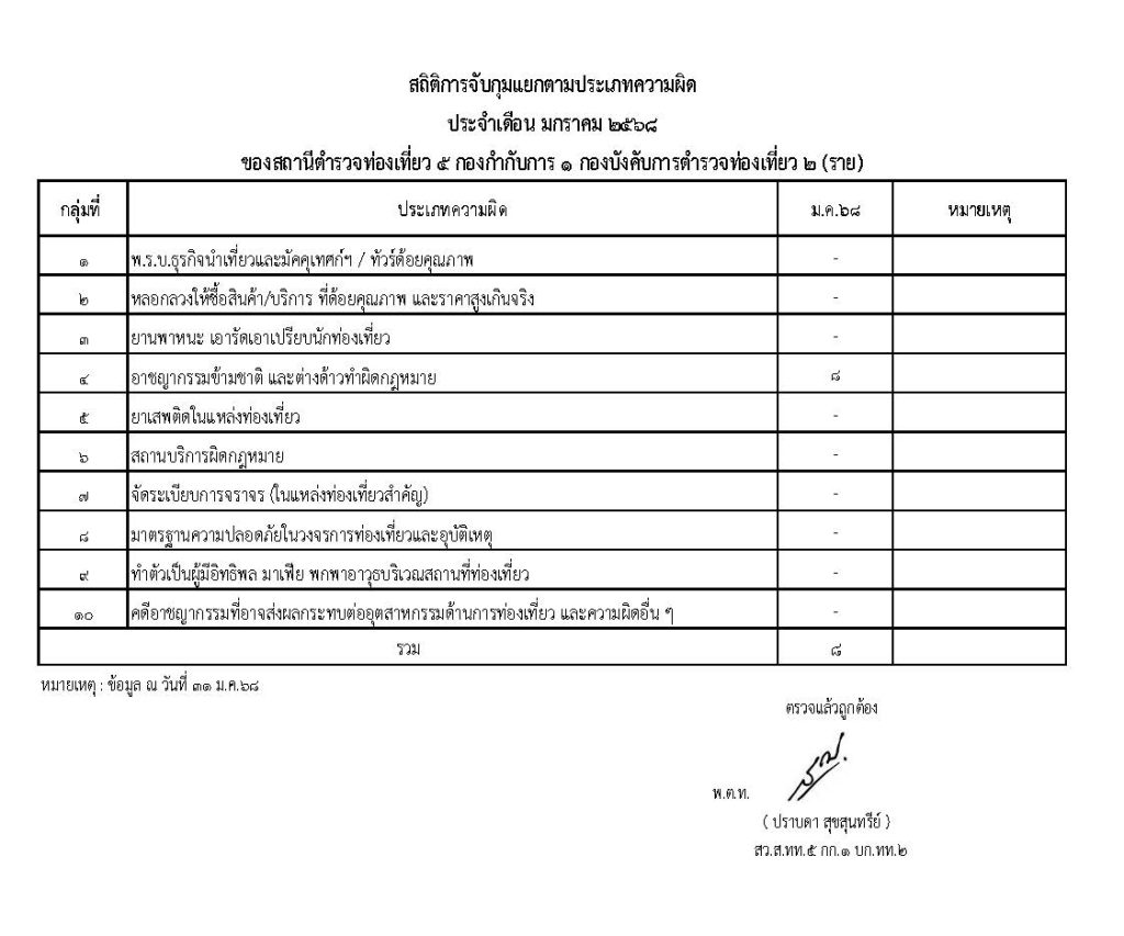 สถิติการจับกุมแยกตามประเภทความผิด เดือน ม.ค.68