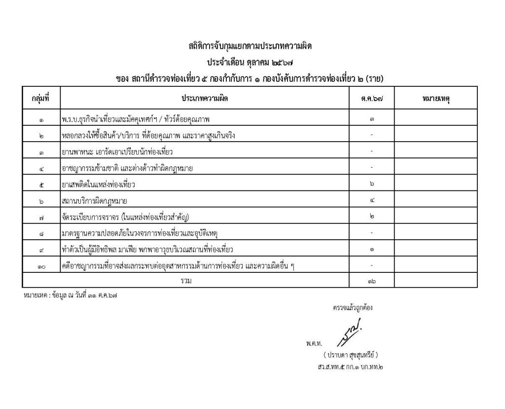 สถิติการจับกุมแยกตามประเภทความผิด เดือน ต.ค.67