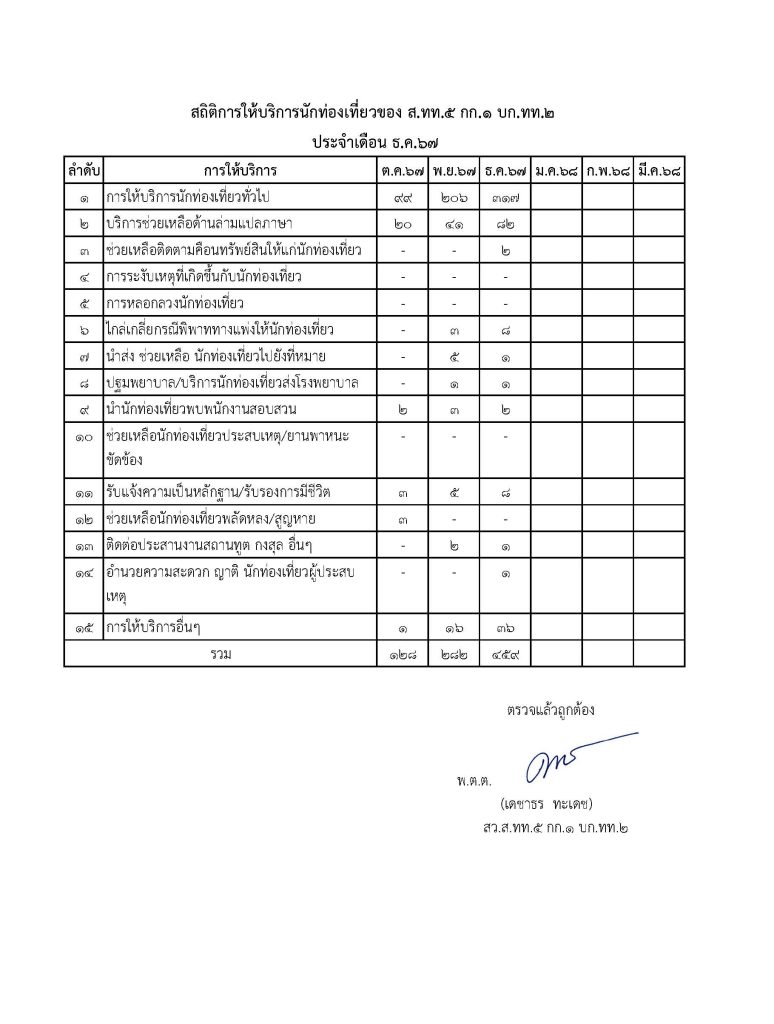 สถิติการให้บริการนักท่องเที่ยว ประจำเดือน ธ.ค.67