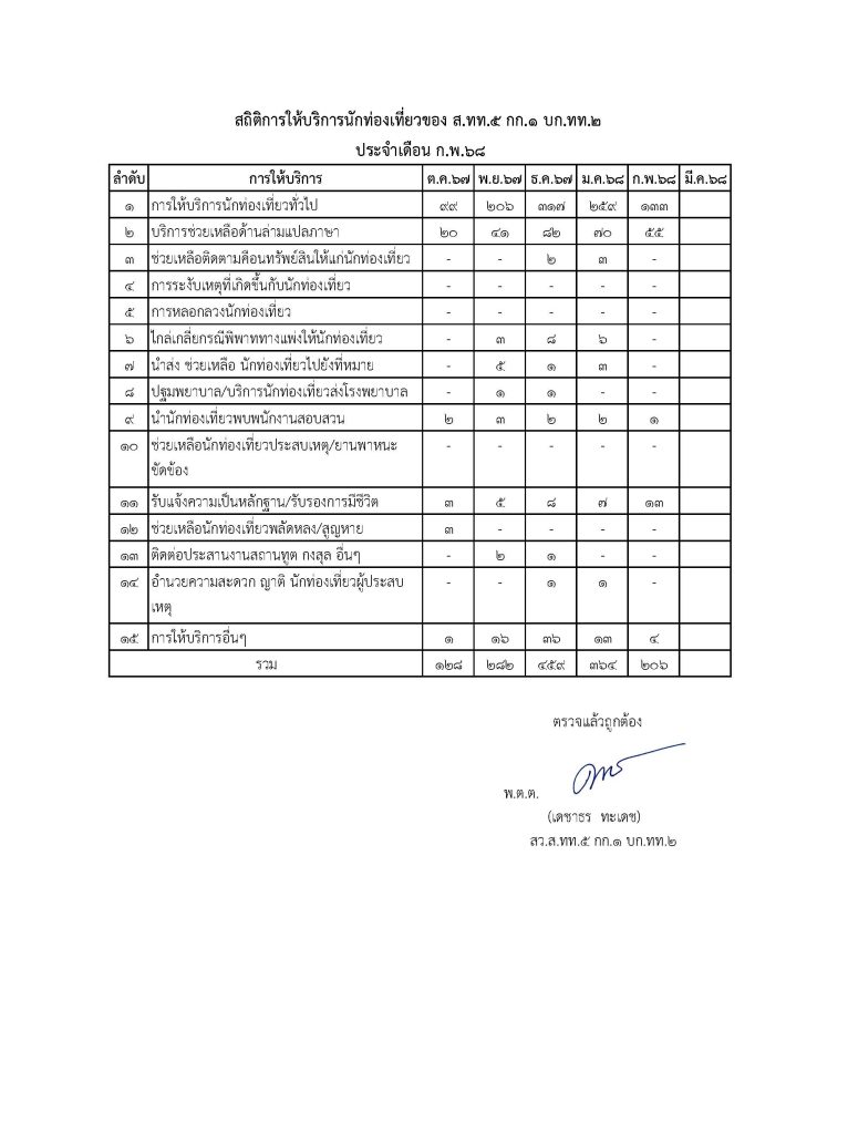สถิติการให้บริการนักท่องเที่ยว ประจำเดือน ก.พ.68