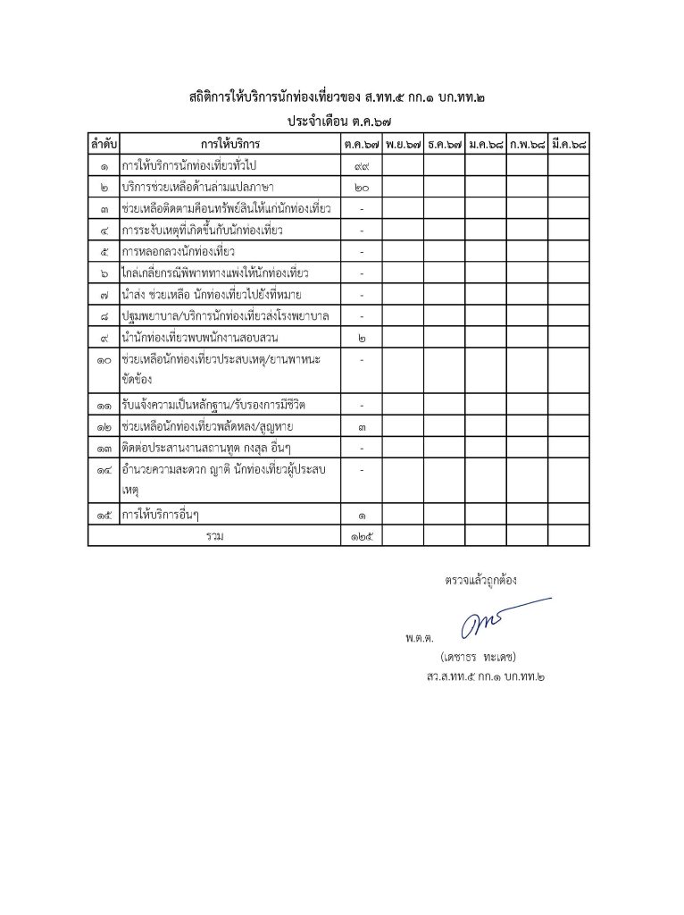 สถิติการให้บริการนักท่องเที่ยว ประจำเดือน ต.ค.67