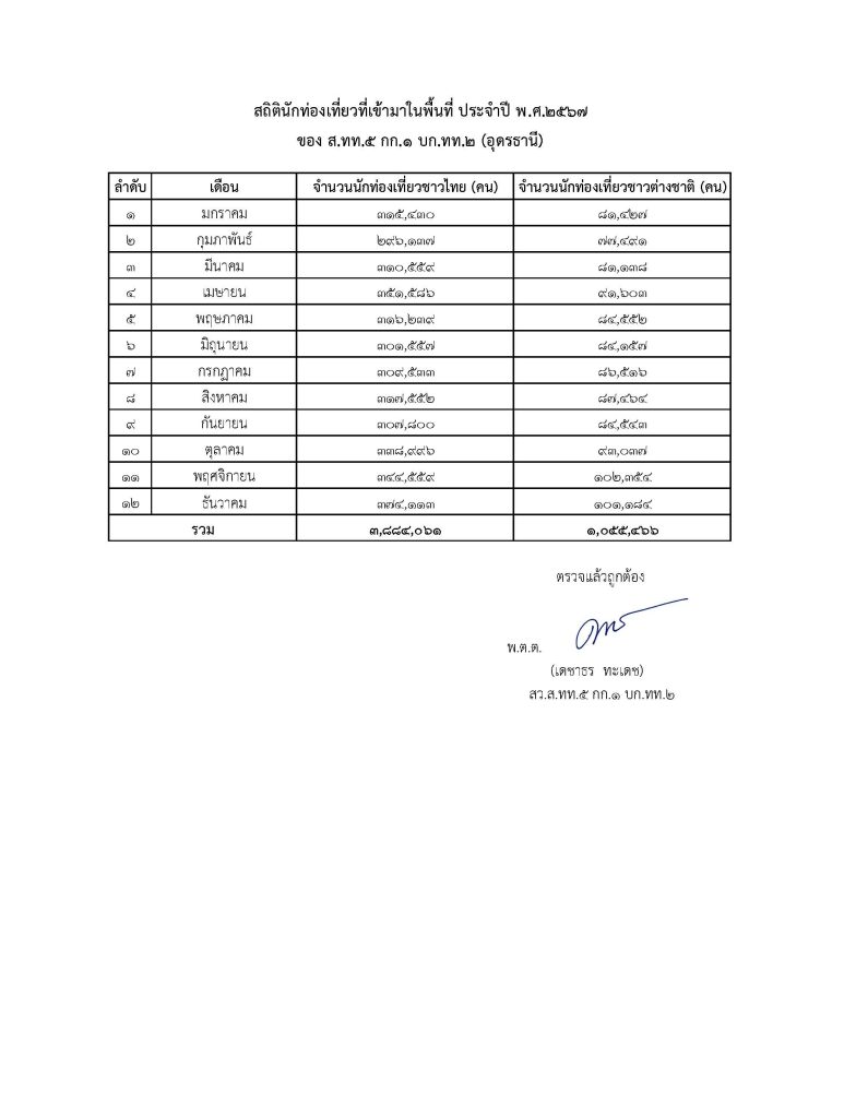 สถิตินักท่องเที่ยวที่เข้ามาในพื้นที่ จ.อุดรธานี ประจำปี พ.ศ.2567