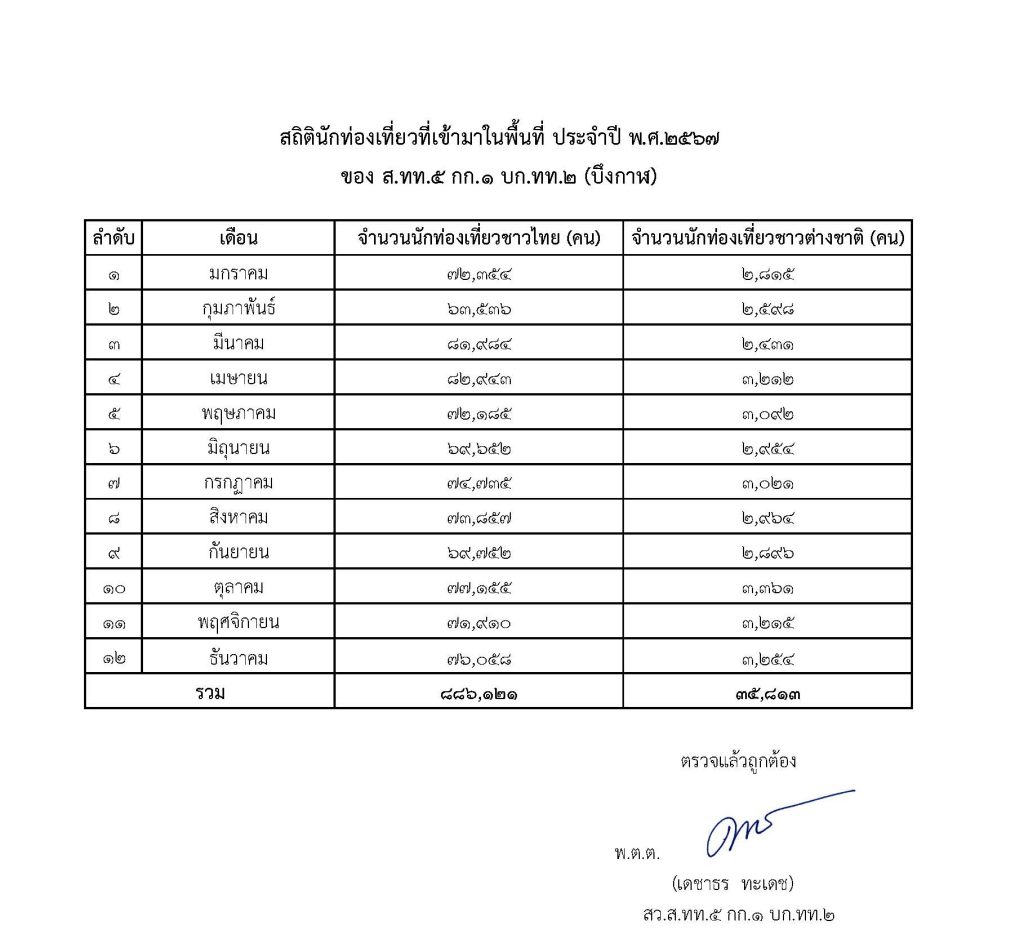 สถิตินักท่องเที่ยวที่เข้ามาในพื้นที่ จ.บึงกาฬ ประจำปี พ.ศ.2567