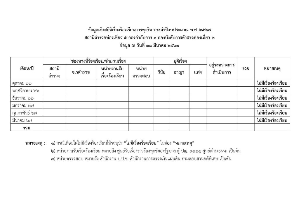 สรุปข้อมูลเชิงสถิติเรื่องร้องเรียนการทุจริตประจำปีงบประมาณ 2567 ห้วงระหว่าง เดือน ต.ค.66 – มี.ค.67