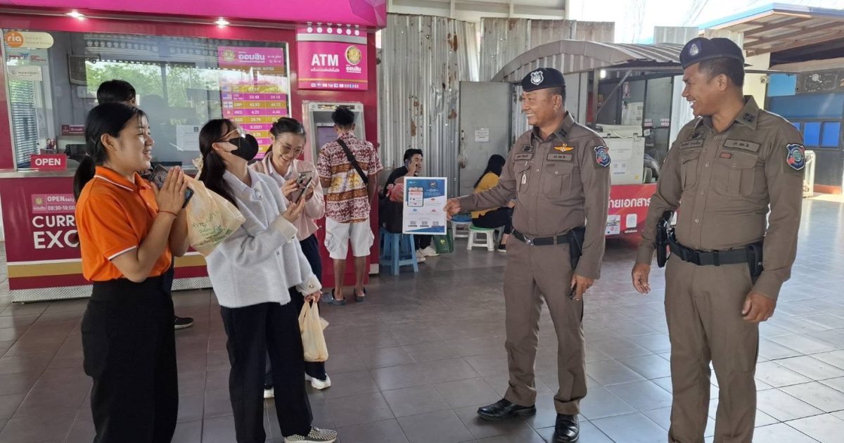 -ออกประชาสัมพันธ์และแจ้งเตือนนักท่องเที่ยว และผู้โดยสารที่เดินทางผ่านด่านพรมแดนสะพานมิตรภาพไทยลาว ซึ่งอาจจะถูกหลอกให้ลักลอบทำงานในประเทศเพื่อนบ้าน แรงงานผิดกฎหมาย หรือ “ค้ามนุษย์” และประชาสัมพันธ์แอปพลิเคชั่น Thailand Tourist Police พร้อมด้วยสายด่วน 1155 ให้แก่นักท่องเที่ยว ได้ทราบเพื่อใช้เป็นช่องทางในการติดต่อเจ้าหน้าที่ เมื่อเกิดเหตุการณ์เร่งด่วนที่ต้องการความช่วยเหลือ