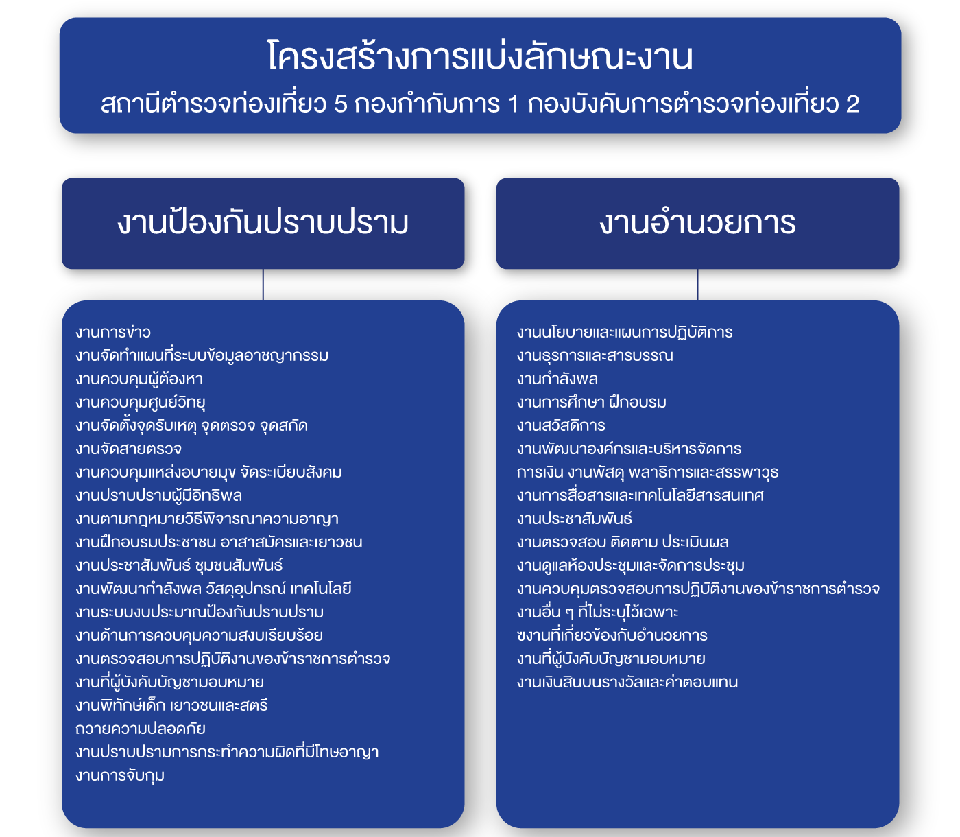 2. ปฏิบัติงานตามประมวลกฏหมายวิธีพิจารณาความอาญา และกฏหมายอื่นเกี่ยวกับความผิดอาญาในเขตอำนาจรับผิดชอบหรือเขตพื้นที่การปกครอง ทั้งในกรณีผู้เสียหายหรือผู้ต้องหาเป็นคนต่างด้าวซึ่งเข้ามาในราชอาณาจักรเป็นการชั่วคราวเพื่อการท่องเที่ยวหรือเพื่อการอื่นตามกฏหมายว่าด้วยคนเข้าเมือง หรือในการณีที่มีผลกระทบต่ออุตสาหกรรมการท่องเที่ยวและความผิดอื่นๆที่เกี่ยวข้อง